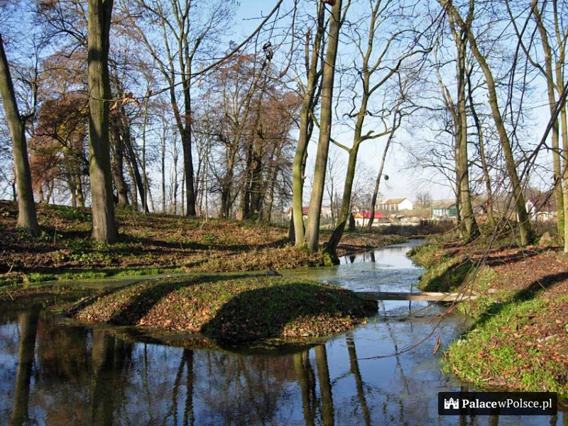 Nieopodal zespołu, ale już poza granicami parku, znajdują się ruiny barokowej kapliczki.